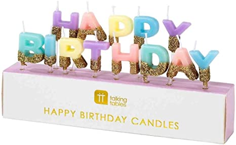 Happy Birthday Candles Cake Topper- Gold And Pastel