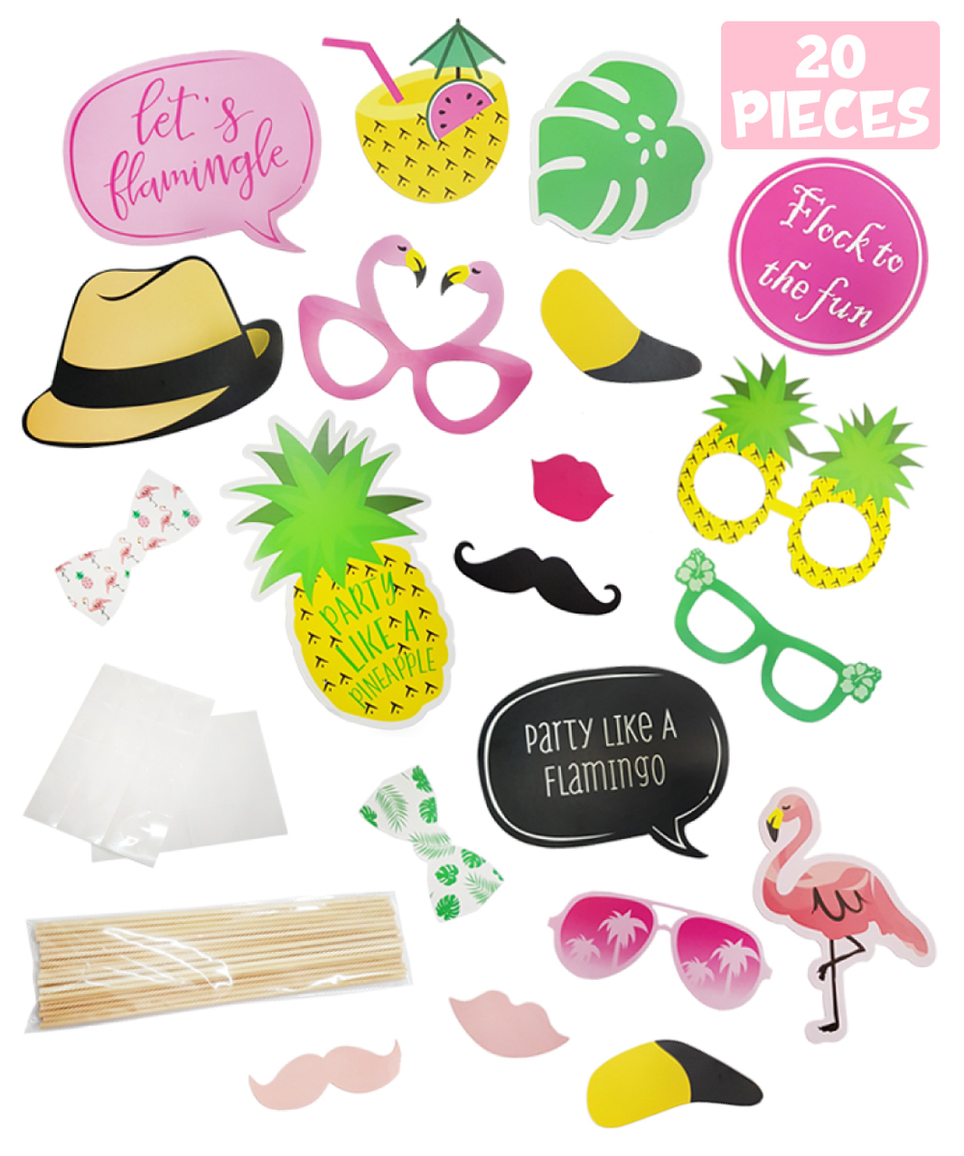 Tropical Flamingo Party Photobooth Props (20 Designs, DIY Kit)